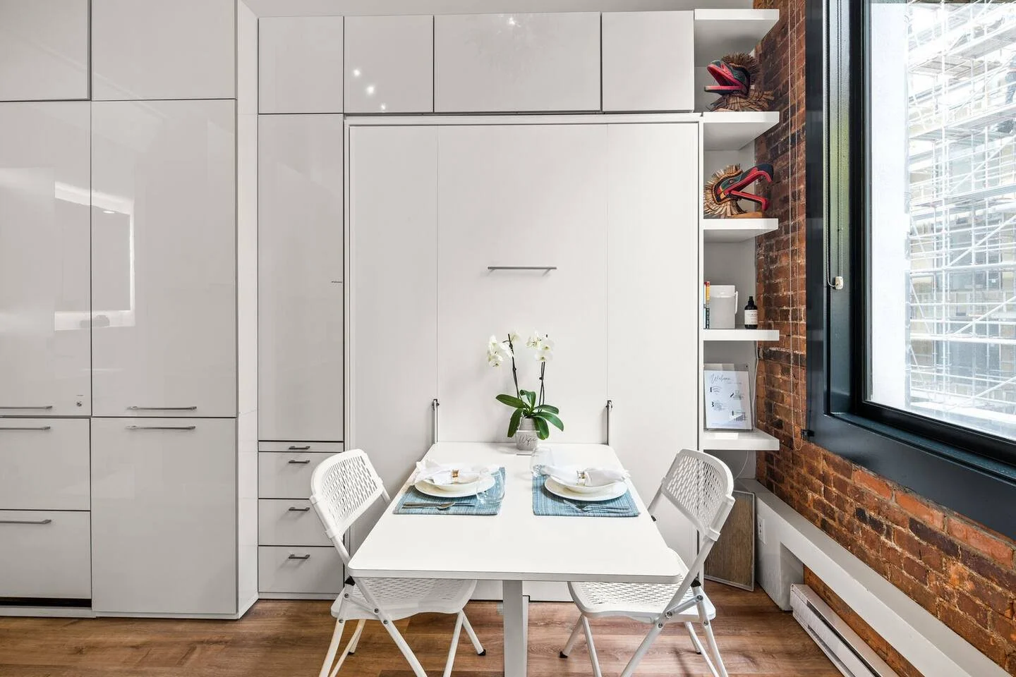 Enjoy the comfort of our Murphy bed which also transforms into a dining table!